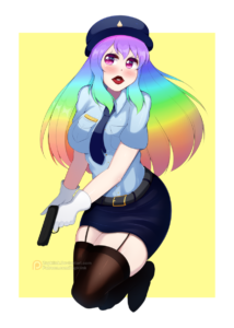 Despite her love for adventure, Lulu wasn’t without her challenges. To fund her travels, she occasionally took jobs, including a brief stint in retail—a job she hated with a passion. The monotony of the work and the rude customers were far from the excitement she craved, and her hair would often shift to an irritable yellow or a frustrated grey during her shifts. Retail work reminded her of how much she valued her time as a police officer, and it strengthened her resolve to return to her original profession once she was done exploring.