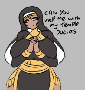 The religious enclave that nurtured Zaratah played a crucial role in sculpting her character. Devoted to the worship of the gods, she embraced her role as a nun with grace, fulfilling her duties with unwavering commitment. As a teacher within the temple, Zaratah imparts wisdom to eager students, weaving tales of faith and guiding them on their spiritual journeys. She also assumes the role of a confidante, offering solace to those who seek guidance through the sanctity of confessionals.